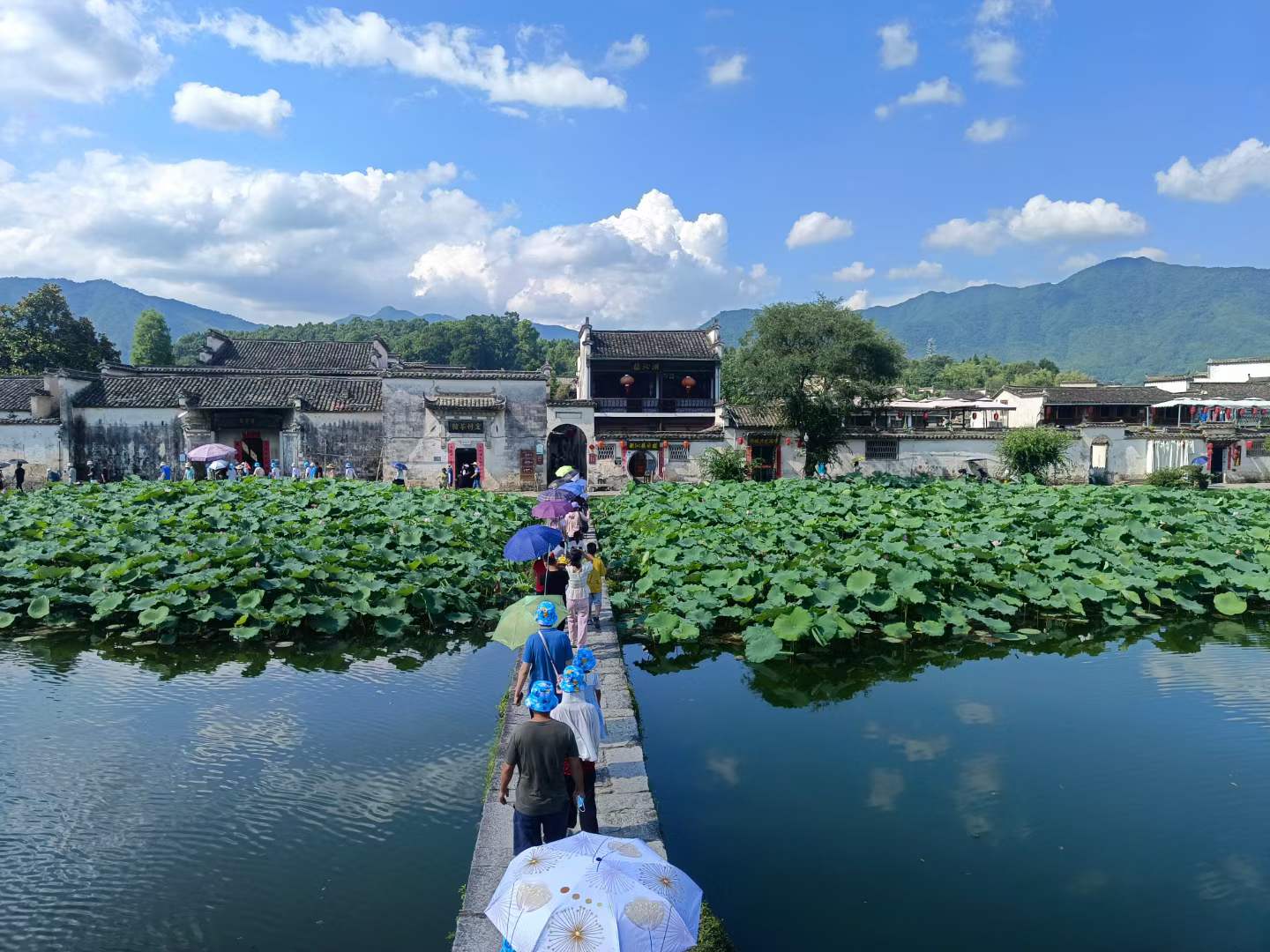 宏村,一座以徽派建筑為特色的村落,始建于南宋,位于黟縣城西北角,距今已近千年歷史,為汪姓聚居之地,因奧斯卡獲獎(jiǎng)電影《臥虎藏龍》而聞名中外,整個(gè)村落占地30公頃,枕雷崗面南湖,山水明秀,被譽(yù)為“中國畫里的鄉(xiāng)村”。因空中俯視角度猶如一只大水牛橫臥在田野之中,又稱牛形村