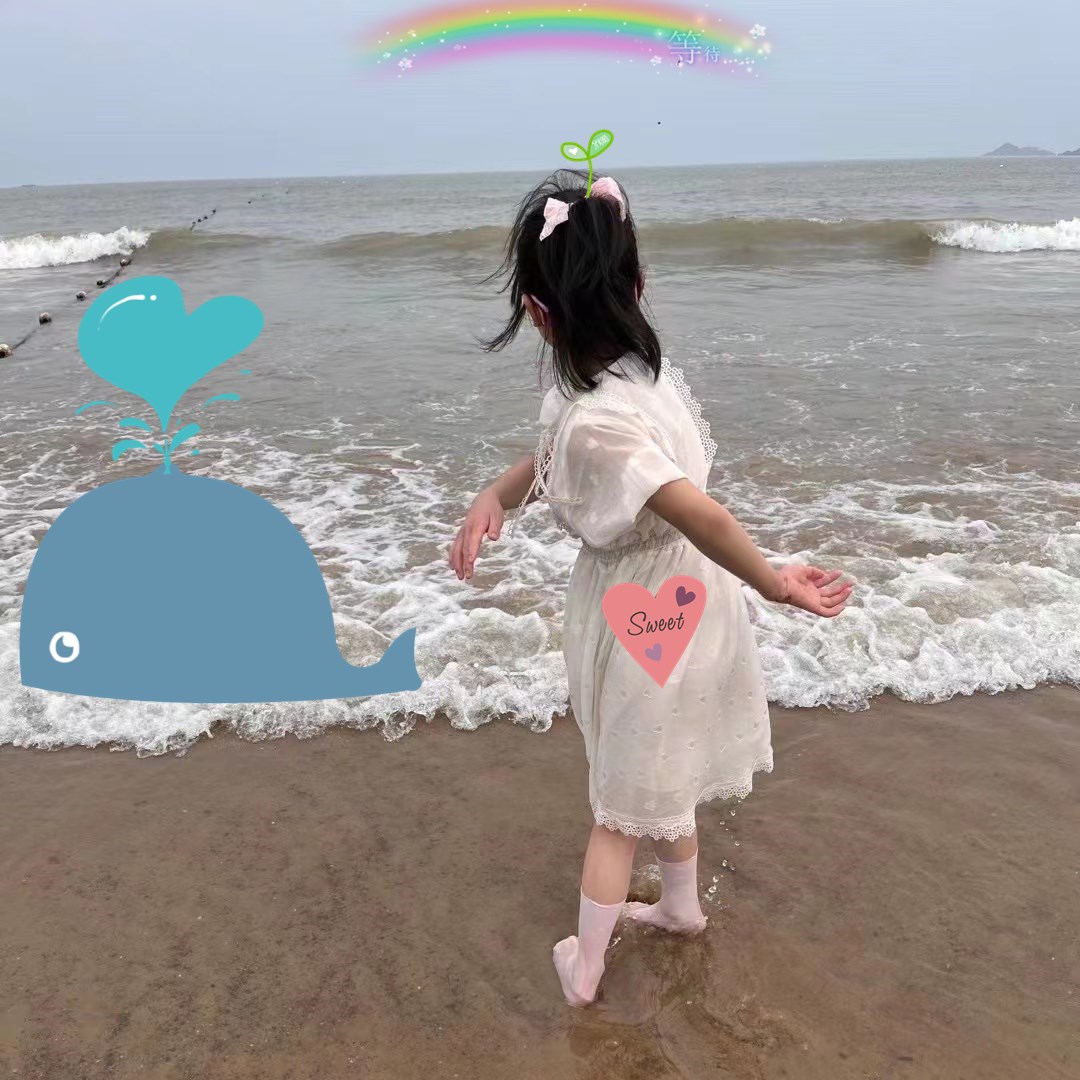 小朋友們宛如一只只活潑可愛的小鴨子自由自在地游來游去。孩子們的喊聲,笑聲,打鬧聲充斥著整個海灘,蕩漾著歡樂。