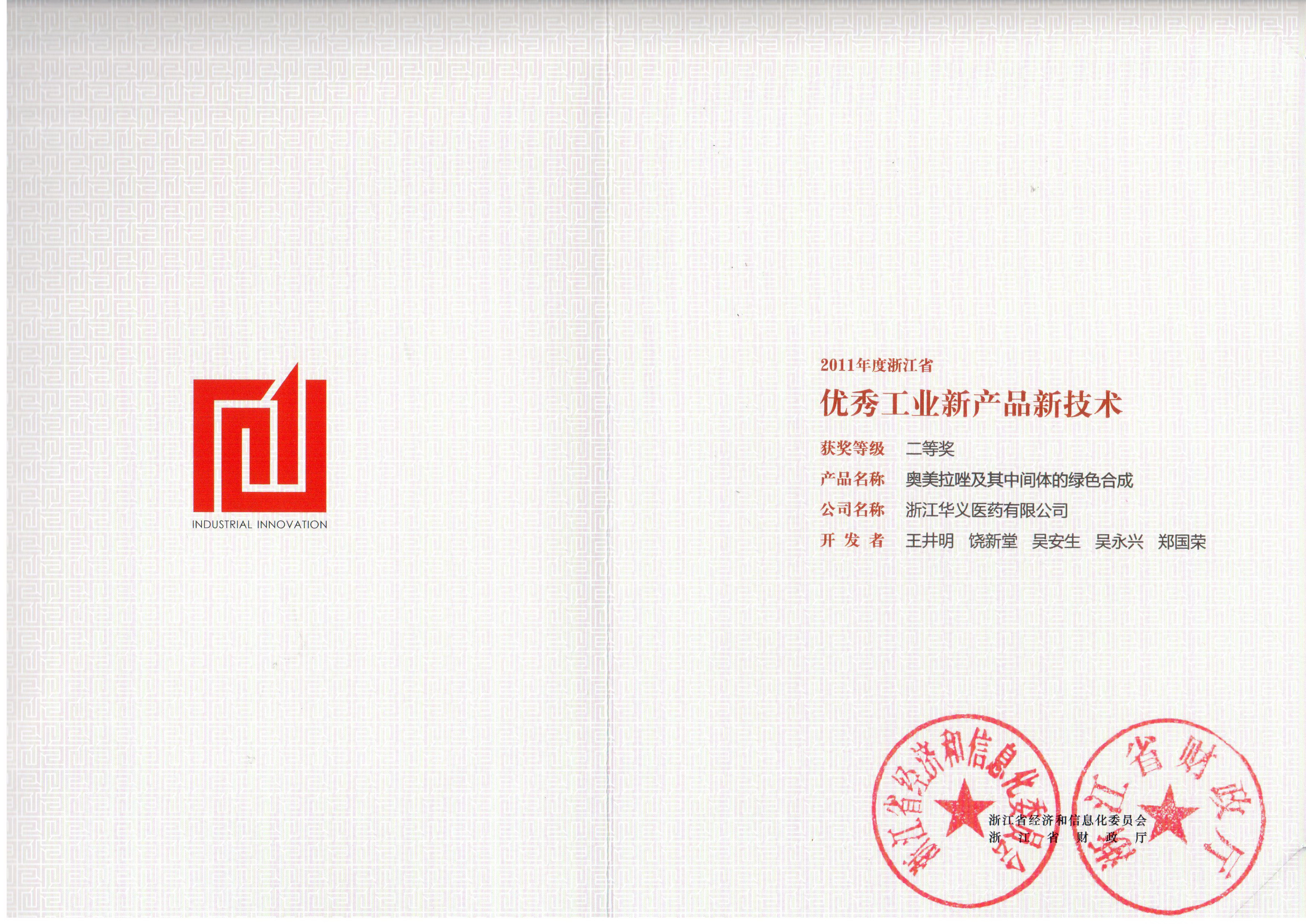 省級(jí)優(yōu)秀工業(yè)新產(chǎn)品-奧美拉唑